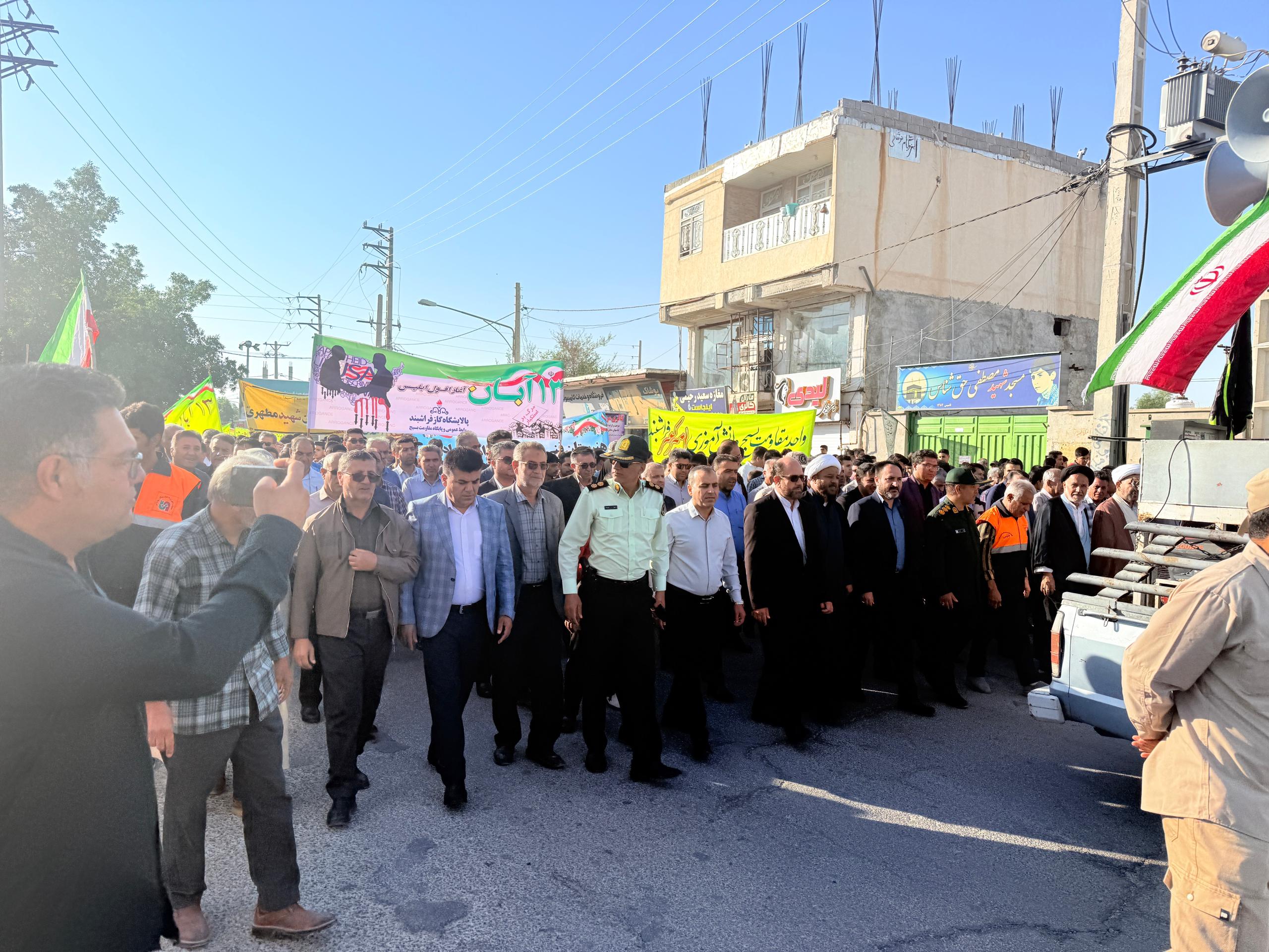 به گزارش روابط عمومی شبکه بهداشت و درمان شهرستان فراشبند، در این مراسم که با حضور اقشار مختلف مردم، دانش‌آموزان، فرهنگیان و مسئولان شهرستان برگزار شد، کارکنان حوزه سلامت با صفوف منسجم، پرچم مقدس جمهوری اسلامی ایران در دست و با شعارهای استکبارستیز، بار دیگر همبستگی خود را با آرمان‌های امام خمینی (ره) و مقام معظم رهبری (مدظله‌العالی) به نمایش گذاشتند.