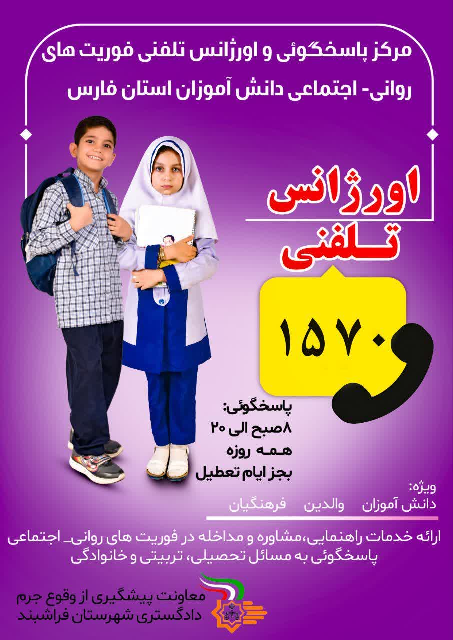 مرکز پاسخگویی و اورژانس تلفنی فوریت‌های روانی – اجتماعی دانش‌آموزان استان فارس با شماره تلفن ۱۵۷۰ آغاز به کار کرد.
